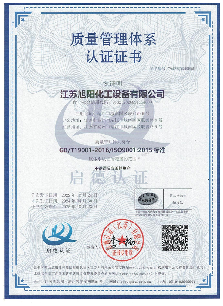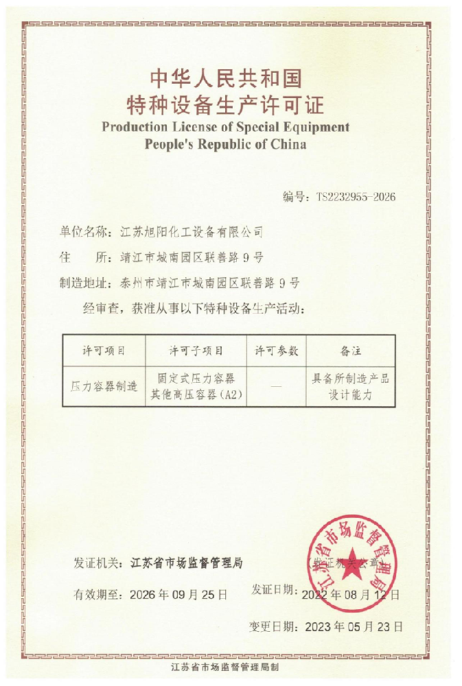 江蘇旭陽(yáng)化工設(shè)備有限公司專(zhuān)業(yè)從事各類(lèi)化工、環(huán)保、制藥、發(fā)酵、食品、新材料、鋰業(yè)等項(xiàng)目設(shè)計(jì)、制造及壓力容器的生產(chǎn)制造,是一家集研發(fā)、生產(chǎn)和進(jìn)出口貿(mào)易于一體的高科技企業(yè)。